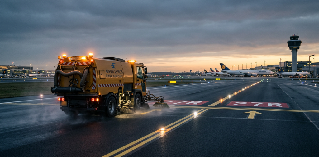 Runway sweeping is not the same as municipal curb work or parking lot cleanup. Airports need equipment that can handle long shifts, large surface areas, and a mix of fine dust, sand, rubber buildup, gravel, and construction debris.