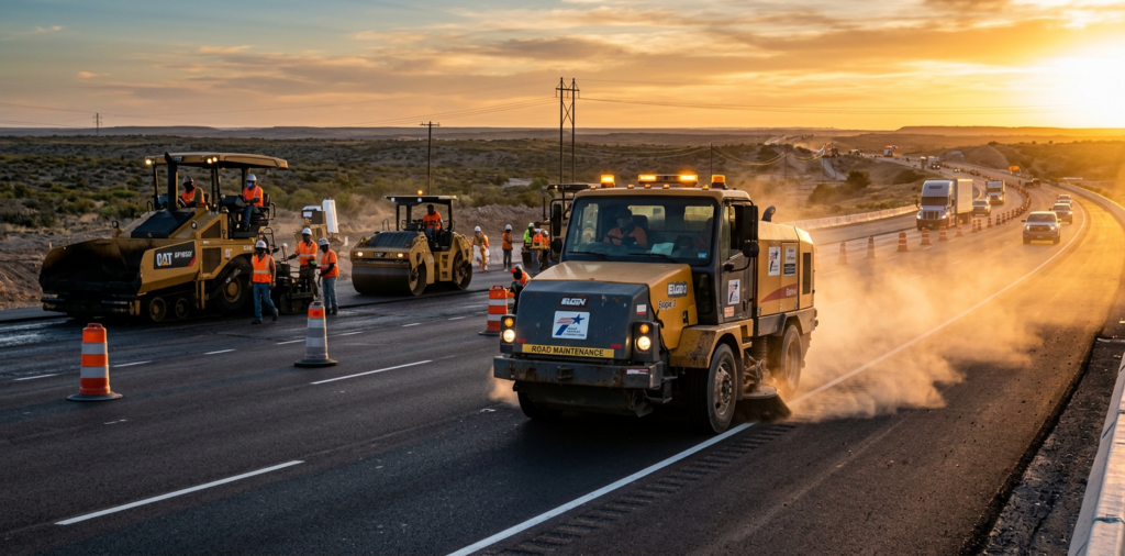 For Texas road construction, mechanical sweepers are often the better choice when the work involves milling, chip seal, shoulder cleanup, and coarse debris.
